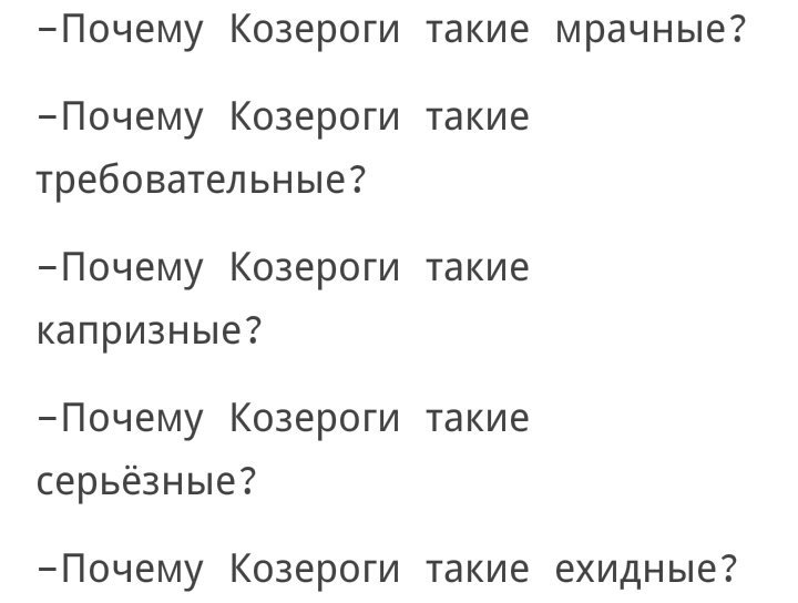 25. «К знакам, наиболее совместимым с Козерогом, относятся верный Телец и практичная Дева». – Неизвестно
