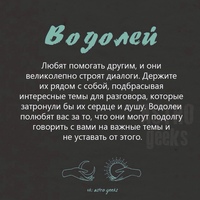 Он будет слепо доверять тебеЗавоевать доверие мужчины-Водолея означает завоевать сердце того, кто будет относиться к вам так, как будто для него нет никого более важного, чем вы.