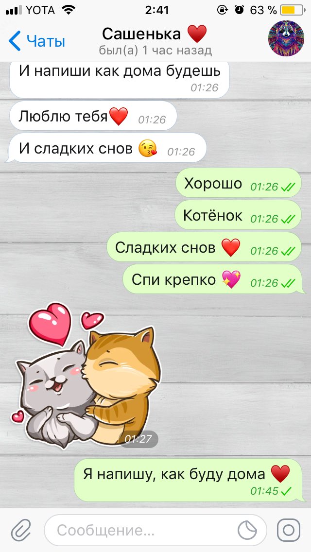 «Доброе утро, мой любимый. Я желаю тебе тепла, а ещё напишу, что очень люблю тебя».