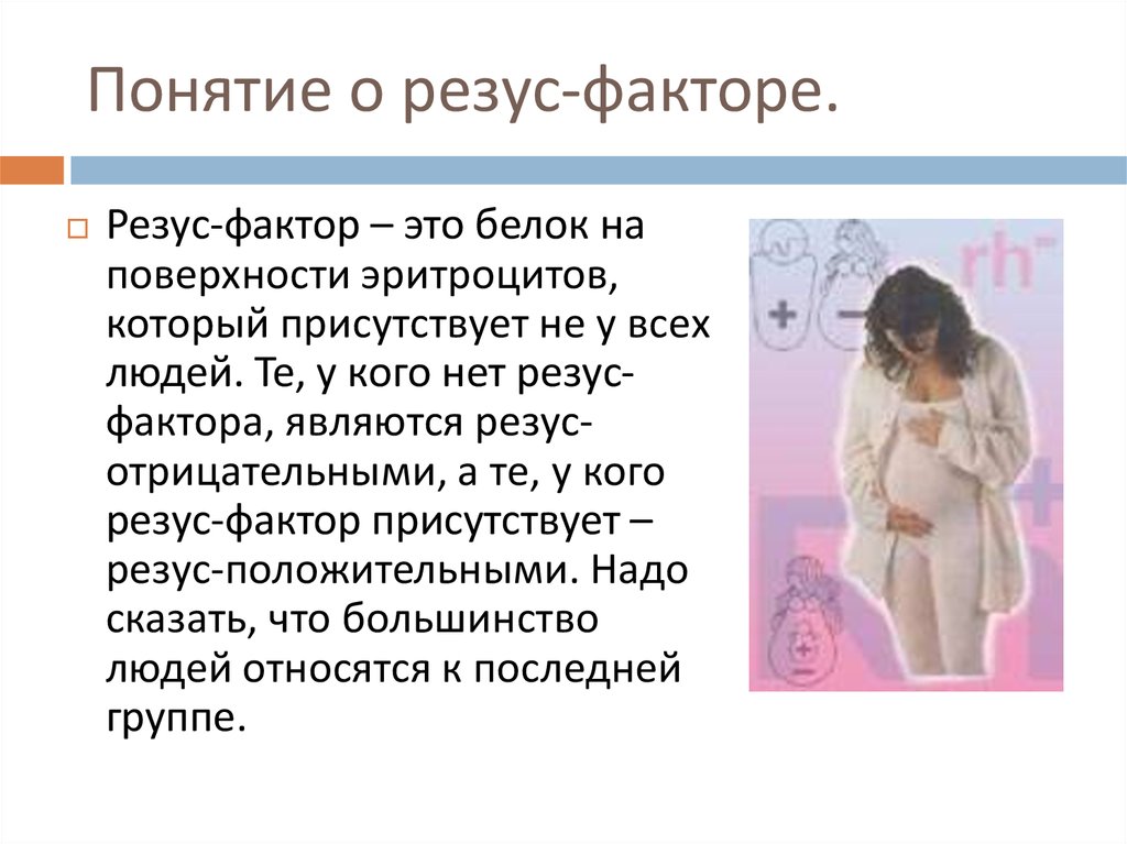 Вы, наверное, слышали, что ваша группа крови «положительная» или «отрицательная». Это относится к белку, называемому «резус-фактор» на поверхности эритроцитов.Когда у людей есть этот белок, они считаются «резус-положительными», тогда как если им не хватает белка, они «резус-отрицательные».