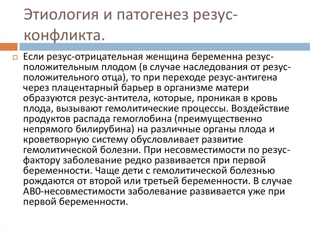 Резус-несовместимость обычно не является проблемой, если это первая беременность матери. Это потому, что кровь ребенка обычно не попадает в систему кровообращения матери во время беременности.