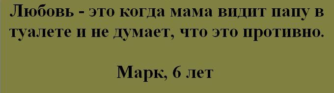 «Любовь — это когда мама видит папу в туалете и не думает, что это отвратительно».