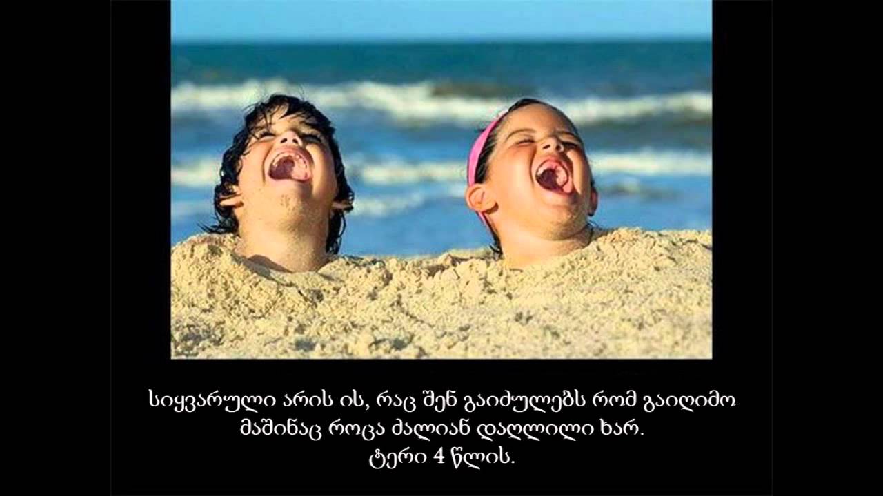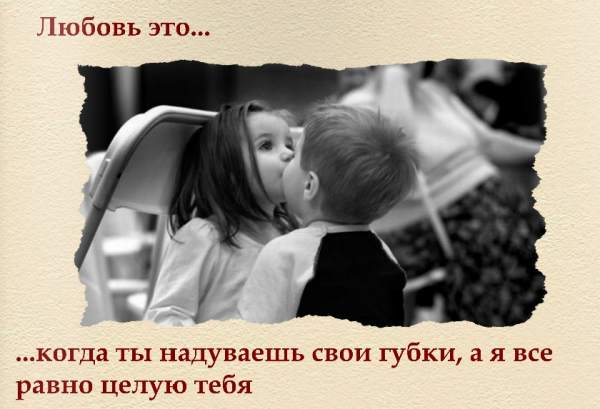 «Любовь — это когда ты целуешься все время. Потом, когда ты устаешь от поцелуев, ты все равно хочешь быть вместе и больше разговариваешь. Мои мама и папа такие. Они выглядят отвратительно, когда целуются».