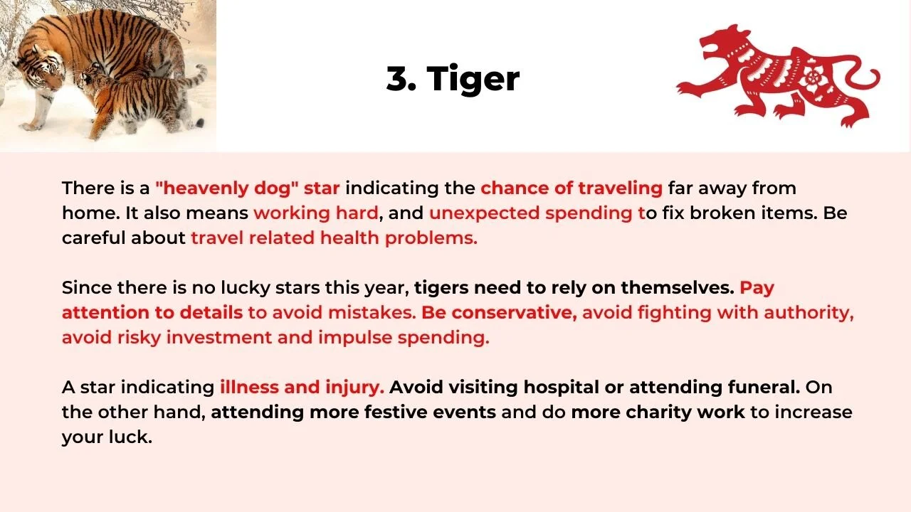 Значительный доход, рациональное потребление — Доход людей, рожденных в год китайского зодиака Тигр, в 2021 году будет весьма значительным.В частности, помимо стабильной зарплаты на стабильной работе, они могут зарабатывать больше денег, управляя множеством дополнительных работ. Этот год будет подходящим временем для открытия собственного дела с надежными партнерами. Старайтесь не покупать акции с высоким риском или не вкладывать много денег только в один проект. В противном случае вы потеряете немного денег. Пожалуйста, сохраняйте рациональность при покупке продуктов, которые сжигают деньги. Копить достаточно денег в повседневной жизни для решения проблем — тоже хорошая привычка в этом году.