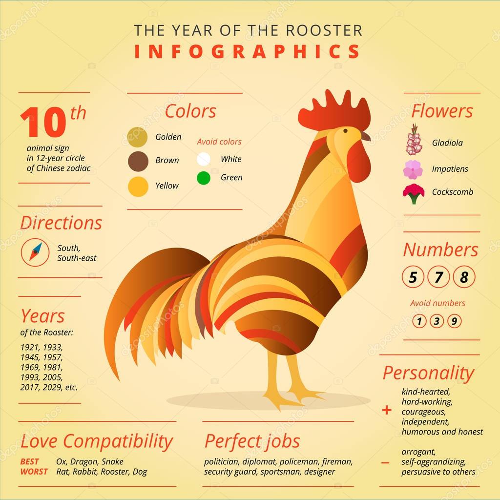 Петух — десятый знак китайского гороскопа. Петух — это Ян и прикреплен к металлическому элементу.Характеристики Петуха соответствуют западному знаку Девы. Ян положительный, мужской и ассоциируется с Днем. Объективные знаки Ян больше зависят от других, чем от самих себя. Вы, как правило, общительны и более физичны, чем духовны. Как в природе притягиваются все противоположности, Ян притягивает Инь. Ассоциация «Металл элемент» олицетворяет амбициозный и трудолюбивый характер. Металлисты склонны полагаться на себя и твердо в своих взглядах, и им трудно идти на компромисс. Металлисты могут быть более материалистичными, чем другие.