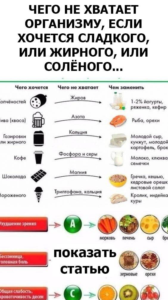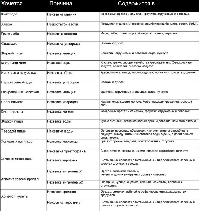 Часто у людей возникает желание съесть или выпить что-то определенное. Например, на диете остро хочется сладкого и мучного. В месте для некурящих возникает непреодолимое желание закурить. Мы не всегда связываем появившееся желание с тем, что в этот момент организм дает сигнал тревоги и намекает на отсутствие каких-то веществ.Давайте разберемся, в чем причина наших желаний и что хочет сказать нам организм, когда нам хочется съесть что-то определенное.