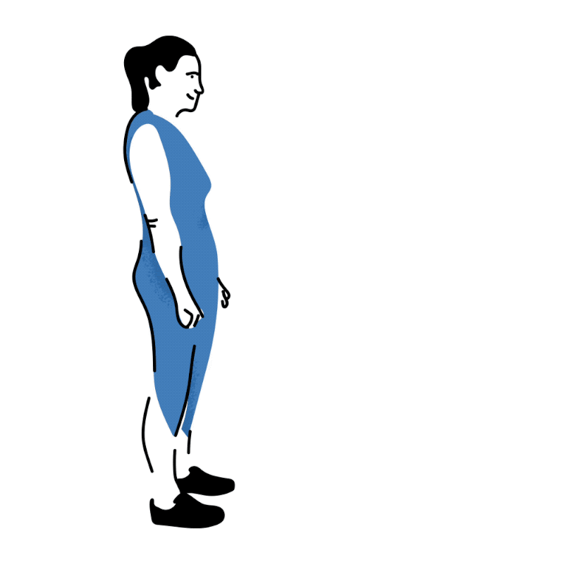 - При ходьбе в первую очередь важно следить за осанкой. Сильно отклоняя корпус вперед или назад, вы ненамеренно нагружаете позвоночник, что чревато болями в спине. Занимаясь ходьбой, вы должны выпрямить корпус и держать подбородок так, чтобы он был параллелен полу. Плечи при этом надо расслабить, а живот втянуть, слегка вытолкнув таз вперед.