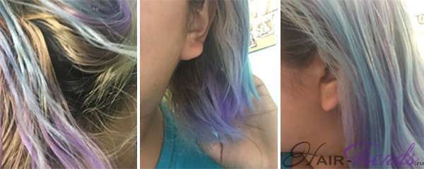 Тоник на обесцвеченных волосах смывается долго (около нескольких недель). Светлые волосы лишены верхнего защитного слоя. Средство при покраске не только проникает внутрь, но и служит тем защитным слоем. К тому же, при неблагоприятном оттенке, например, синем – кудри будут держать его дольше, чем обычную краску – такие цвета плохо вымываются, за счет того, что синий – один из глубоких оттенков, а его красящие пигменты буквально въедаются в корневые слои.
