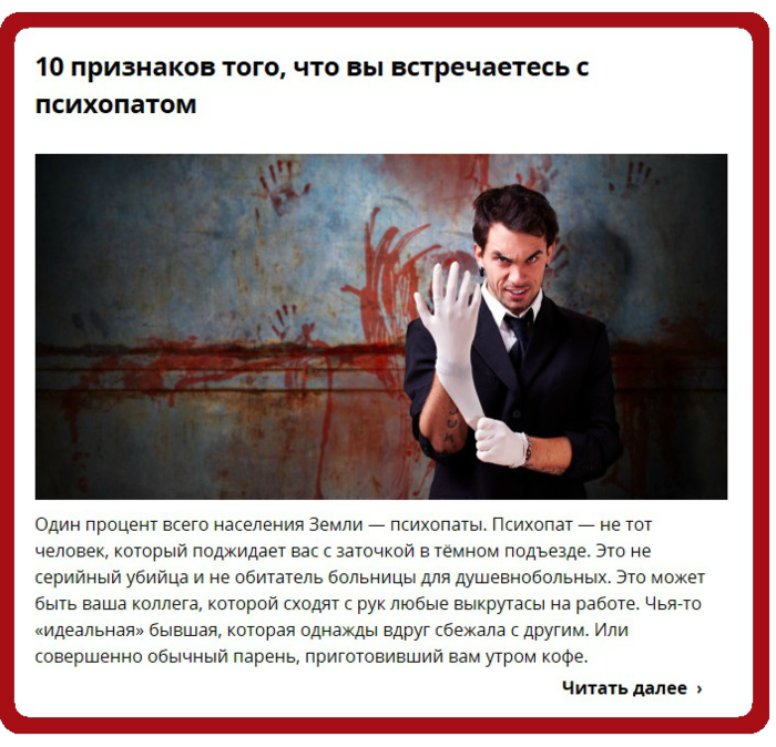Психопат — не обидное словцо, применимое по отношению к человеку с дурным характером, а диагноз. Как распознать психопата и как с ним себя вести – читайте на sympaty.net.