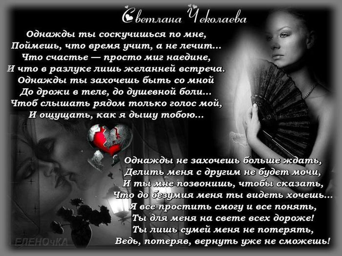 Если вы скучаете по кому-то лишь тогда, когда в вашей жизни наступают черные дни, не обманывайте себя. На самом деле этот человек вам вовсе не нужен. Но с другой стороны, если мысли о нем не оставляют вас даже в самые счастливые моменты — что ж, поздравляю вас, по этому человеку действительно стоит скучать. Если в этот момент, взглянув на себя со стороны, вы, прежде всего, думаете «Ах, вот если бы разделить сей миг с этим человеком»… что ж, тогда сомнений быть не может — вы действительно его любите.