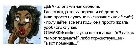 Но обижать Деву лучше не стоит, ведь она даже забыв через некоторое время суть обиды, будет долго помнить сам инцидент. И не оставит его без внимания.
