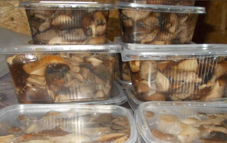 - Варёные грибы можно сложить в пластиковый контейнер с плотной крышкой или полиэтиленовый пакет, и положить в морозилку.