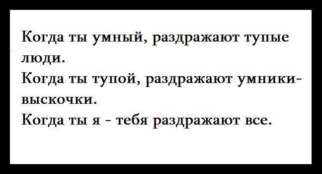 -Вы знаете, одна моя родственница или знакомая тоже… (Унижая, властный человек пытается возвысить себя по сравнению с окружающими собеседниками. Его можно остановить, намекнув на то, что один из ваших близких знакомых входит в группу, которую описывает надменный человек. Этим вы вполне можете поставить его в неловкое положение, или даже, заставить извиниться).