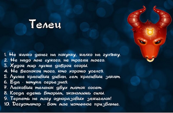 Женщина, связавшая свою жизнь с Тельцом, должна быть готовой ко всему: из спокойного и вальяжного теленка он способен превратиться разъяренного Быка и наговорить своей возлюбленной много лишнего. Но это не значит, что он бесчувственный – угрызения совести начинают его «поедать» сразу же после того, как он успокоится.