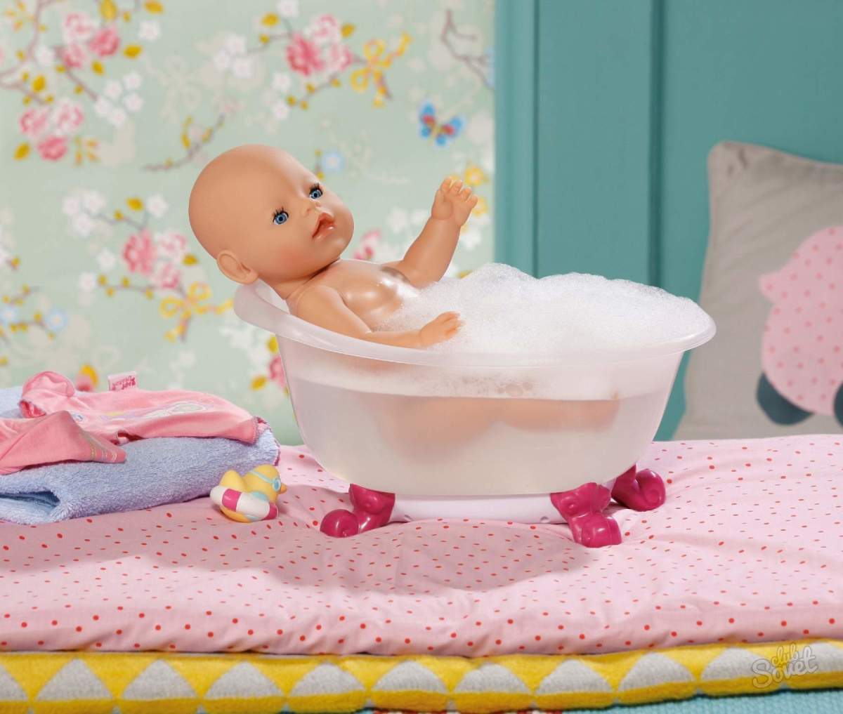 Куклу Беби бон можно купать, не окуная с головой. Желательно не брать куклу в хлорированный бассейн или в море – соленая вода и хлор могут испортить пластик. А вот в ванной допустимо использование детских пенок и шампуней – они не повредят куклу.
