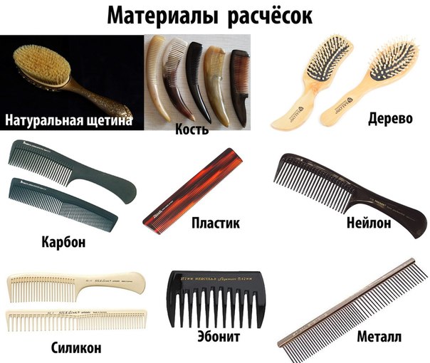 В зависимости от материала, из которого изготовлен аксессуар, расчески делятся на: