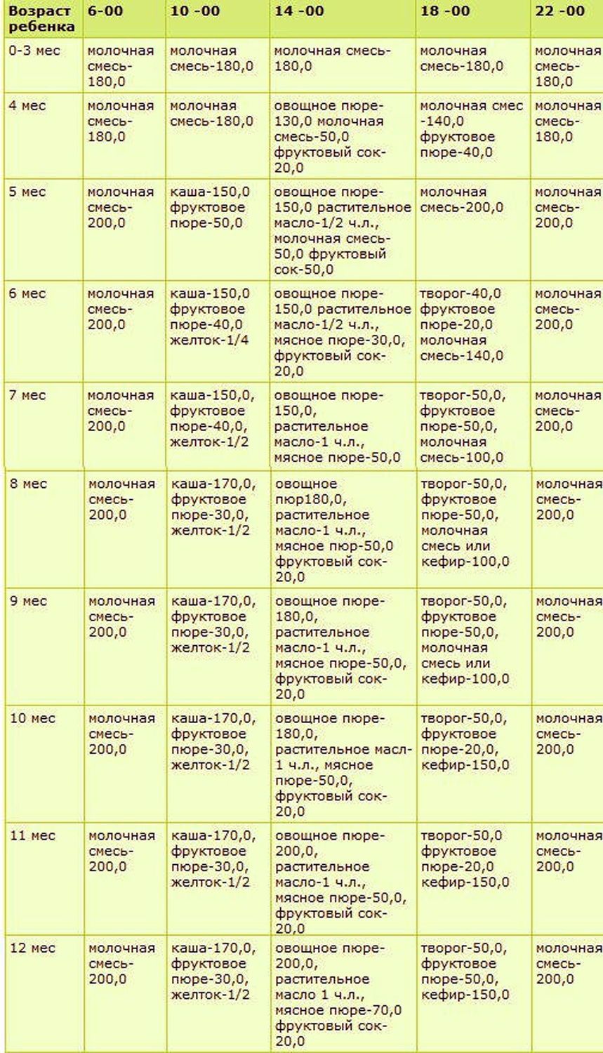 Рацион питания ребенка 8-9 месяцев