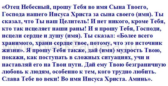 В детстве и юности своей мальчики больше общаются с матерями, так как отец часто много работает, возвращается поздно и, практически, не уделяет сыну должного внимания. Чтобы мальчик не отдалялся от отца и понимал, что отец его трудится во имя блага семьи, необходимо ежедневно произносить специальную молитву, которая поможет мужчинам сблизиться и понимать друг друга.