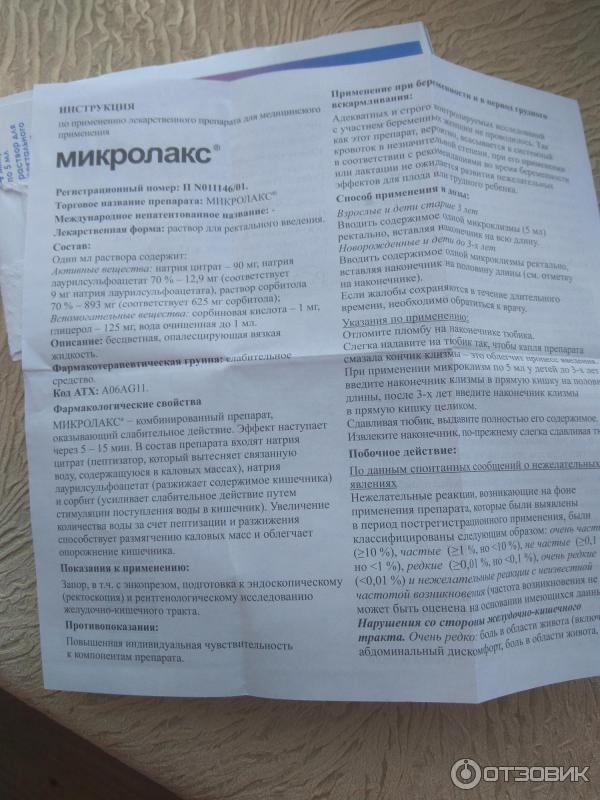 Инструкция для применения медицинского лекарственного средства МИКРОЛАКС®(MICROLAX®)