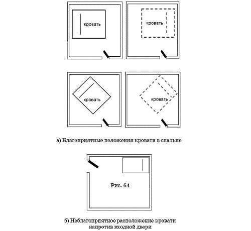 Специалисты в области фен-шуй советуют не ложиться головой к двери в любых условиях, не обращая внимание на стороны света. Они объясняют это тем, что подобное положение ухудшает энергетический баланс, из-за чего появляется усталость у любого человека.