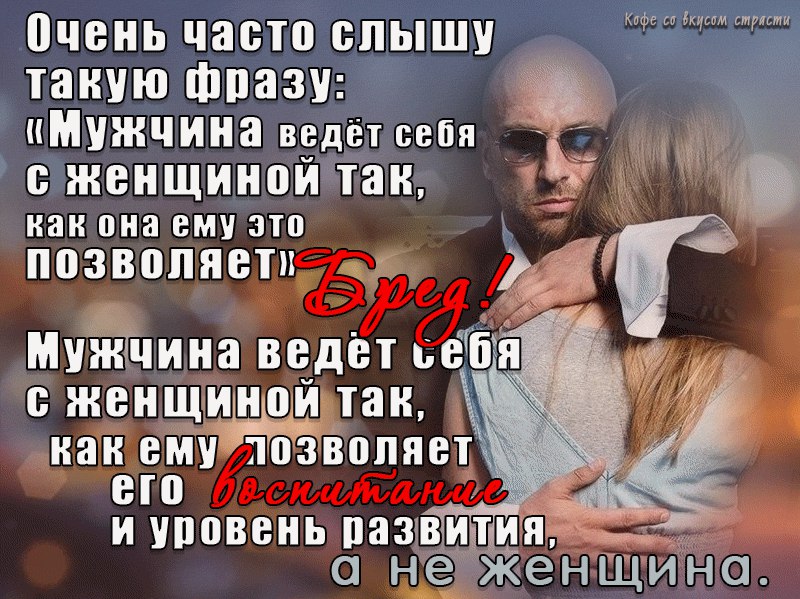 Каждый мужчина хочет быть мужчиной, но когда вы с ним ведёте себя с позиции родителя, он внутри чувствует себя ребёнком и психологически деградирует. Ему это не нравится, в нём зреет бунт, он хочет восстановить баланс и почувствовать себя мужчиной, случаются измены. То есть мужчина, наконец, находит себе не мать, а женщину. Женщину, которая в него верит, отдаёт ему часть ответственности, говорит ему, что он справится, ничего страшного, у него всё получится.
