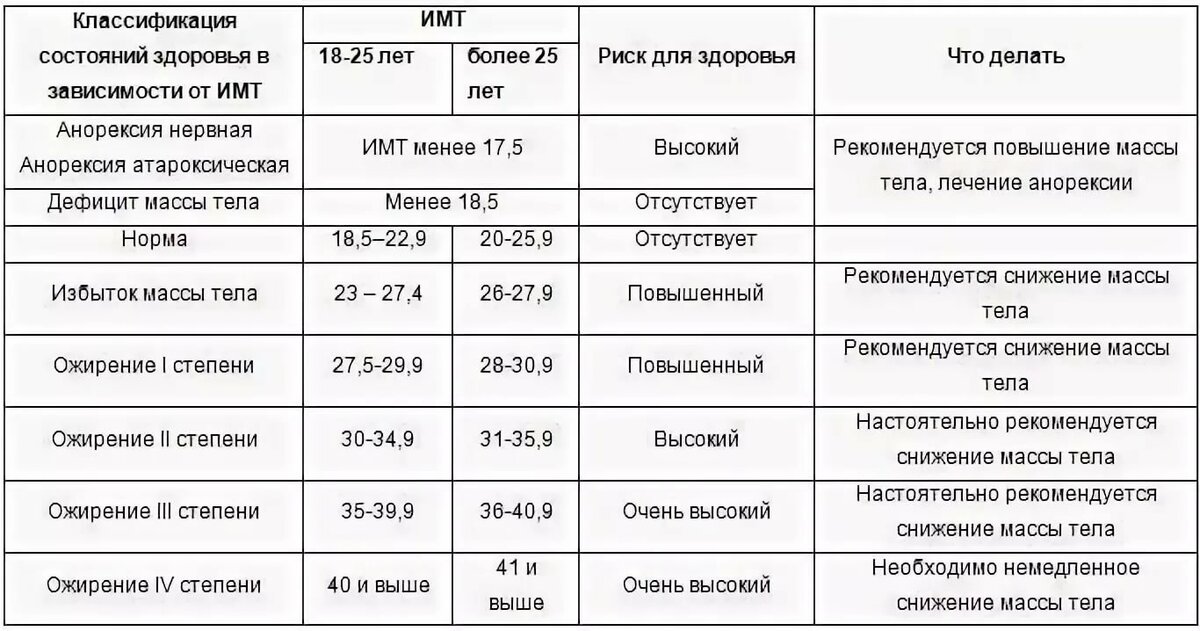 - ИМТ менее 25 — вес в пределах нормальных значений.