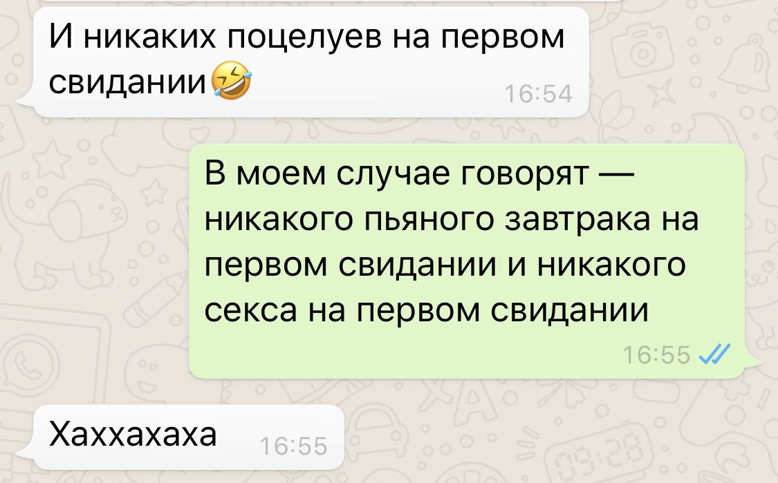 Он, конечно, думал об этом. У него в голове был свой план. Он носился с ним уже какой день. Продумывал все до мелочей. А что, если она скажет так, думал он. А что, если она обидится, пугался. А что, если с девушками так себя не ведут, ужасался. И тут приходит она, выпивает бокал дайкири, подмигивает и сама вызывает такси. Понятно, что он испугался. Он такого не ожидал. Для него это разрыв шаблонов. Она поломала его систему. Так с мальчиками нельзя. Для него это свидание может вылиться травмой.5. Она обманула