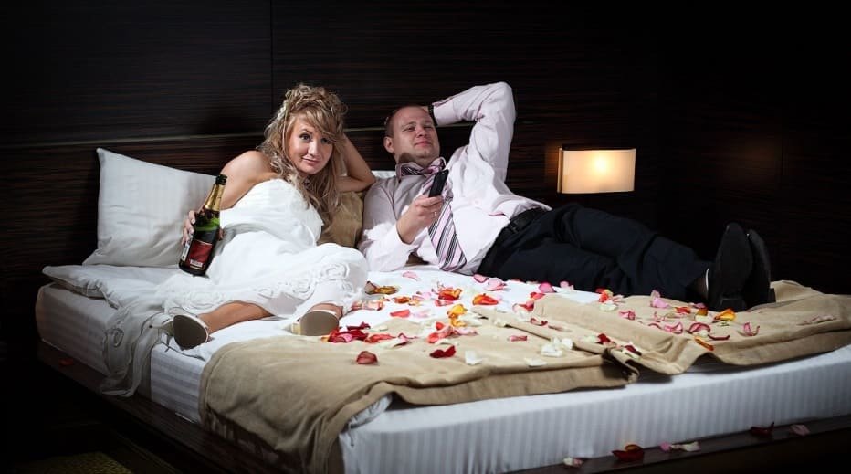 Правда о первой брачной ночиК счастью, современные пары к концу свадебного торжества становятся настолько уставшими, что ни о каком сексе не идет и речи. Длительные приготовления, стресс, алкоголь и слезы радости на глазах собравшихся – все это выматывает и не оставляет молодоженам возможности после торжества предаться любовным утехам. Правда в том, что им уже все равно. Сюжет вечера после свадьбы все чаще становится похож на комедию, нежели на “50 оттенков серого”. По большому счету,