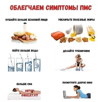 Хорошо сбалансированная диета необходима для хорошего здоровья в целом, а также для лечения предменструального синдрома.Сократите потребление натрия, чтобы уменьшить задержку воды, и сахара и кофеина, чтобы снять напряжение и раздражительность. Некоторые женщины считают, что шесть небольших приемов пищи в день вместо трех больших приемов пищи (другими словами, регулирование уровня сахара в крови) может иметь огромное значение. Другие считают полезным перекусывать между приемами пищи, богатые белком, во второй половине своего цикла.