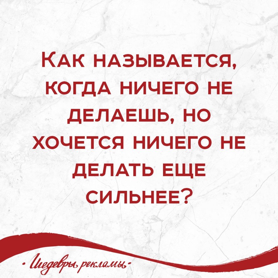 Ничего не делать большинству из нас чуждо понятие.В лучшем случае глупо расслабляться, когда вашего внимания ждет список длиной в милю; в худшем случае вы можете корить себя за лень и пустую трату времени. Но это ключ к избавлению от зависимости от продуктивности, которая крутит вас по кругу. Вот как можно научиться ничего не делать: 1. Осознайте свою неистовую продуктивность. Первый шаг к тому, чтобы избавиться от любой привычки, — это осознать ее. «Если вы все время в пути, вам нужно это заметить и что-то с этим сделать», — предлагает Лишман.«Возможно, вы замечаете, что чувствуете себя истощенным, а это значит, что стоит остановиться и какое-то время быть менее продуктивным». Понаблюдайте за своей безумной привычкой тикать в списке дел и постарайтесь ненадолго отступить. [ Примечание редактора: возможно, самое время и для набора изменений.