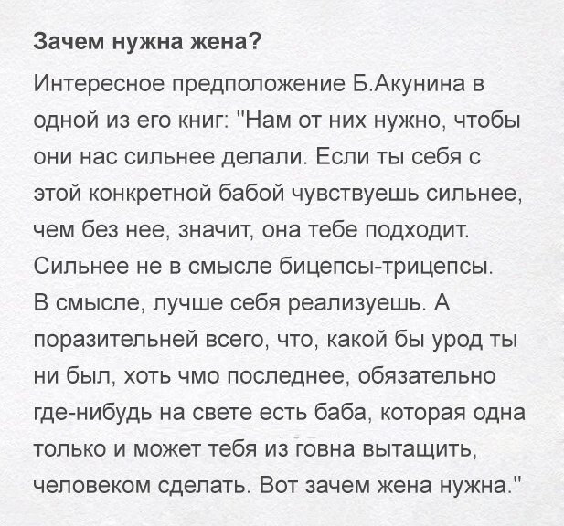 Ведь она лучше знает не только то, что в квартире лежит, как нужно воспитывать ребенка. Такая женщина лучше знает, что самому мужчине нужно, о чем он мечтает, как ему нужно проводить свободное время и т.д. Естественно, что если женщина лучше все знает, то она критикует любое мнение мужчины, она находит ошибки в поведении мужчины, постоянно вспоминает о них, тыкает в них носом.