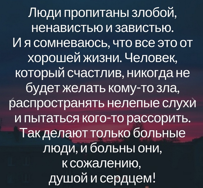 Для ненависти нужен какой-то конфликт, либо внешний, когда люди сталкиваются лбами в каких-то делах, либо внутренний, когда человек не может смириться с действиями, положением, достижениями, взглядами и убеждениями других людей. Когда не умеют люди уживаться между собой, они будут враждовать и ненавидеть друг друга. Или вот та же зависть – это именно внутренний конфликт, вызывающий ненависть к тому, кому завидуют, потому что завидующий человек не способен принять чей-то успех, так как видит в нем определенный ущерб для себя.