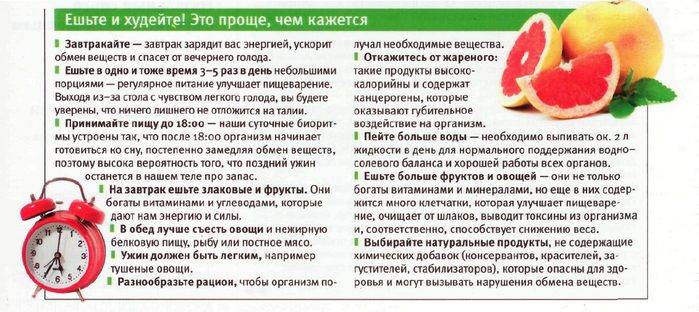 Лучше, если в рационе преобладает клетчатка. Если организм весь день что-то переваривает (только не калорийные продукты), он не станет накапливать жир, ведь голод не предвидится. Кроме того, на переработку пищи тратится примерно 10% калорий. Последняя трапеза должна быть за три или два часа до сна.