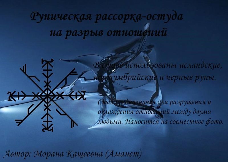 «Данная рунная формула разрушает окончательно и бесповоротно любые отношения, которые связывают (имя) и (имя)»