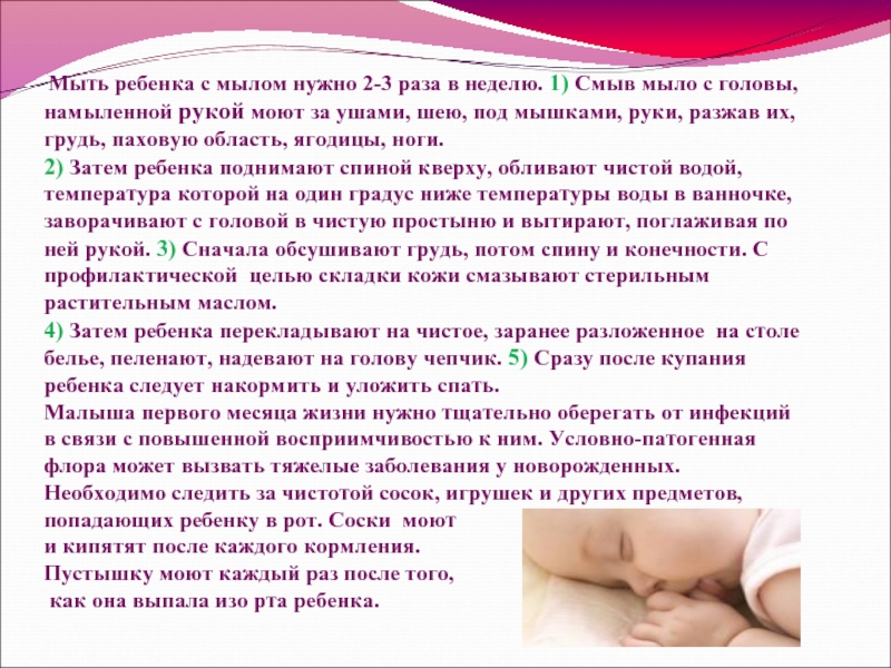 Американская академия педиатров рекомендует мыть детей не чаще, чем три раза в неделю — кожа у младенцев более чувствительная, чем у взрослых, с возрастом она становится суше, а значит, не требуется постоянно мыть их мылом полностью.