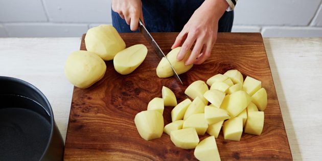 Шаг 2: Нарежьте картофель кусками. Помните, что чем меньше куски, тем быстрее они приготовятся.
