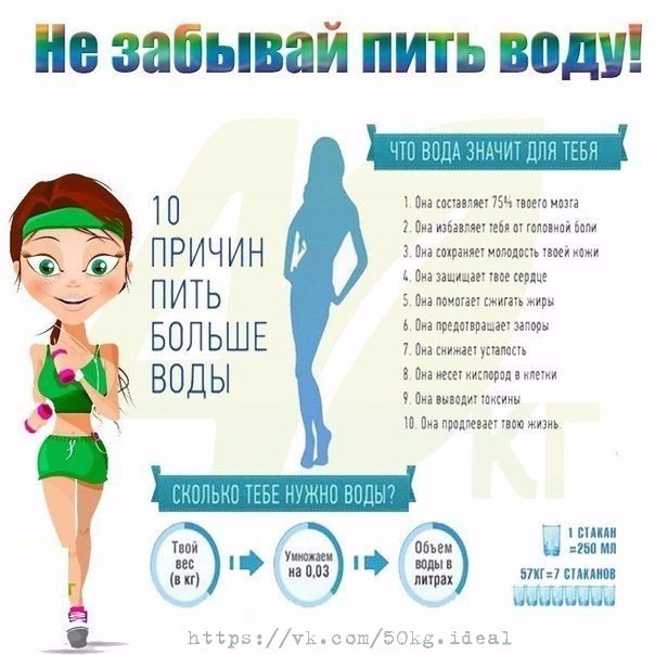 Правильное потребление воды важно по разным причинам.Вода поддерживает внутренние органы тела, сохраняет кожу здоровой и сияющей, способствует циркуляции и выведению токсинов, помогает облегчить работу пищеварительной системы, контролирует воспаление мышц и суставов и помогает организму усваивать питательные вещества из продуктов. Так что, даже если потеря веса не является вашей проблемой, пить достаточно воды следует. Однако, если потеря веса является вашей заботой, вам повезло, потому что правильное потребление воды действительно помогает организму похудеть.