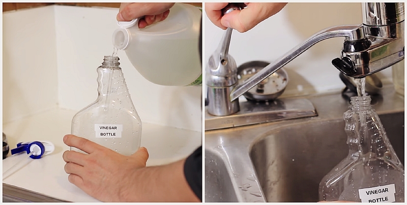 - Затем налейте в распылитель 1 часть уксуса на 3 части теплой воды.Хорошо смешать.