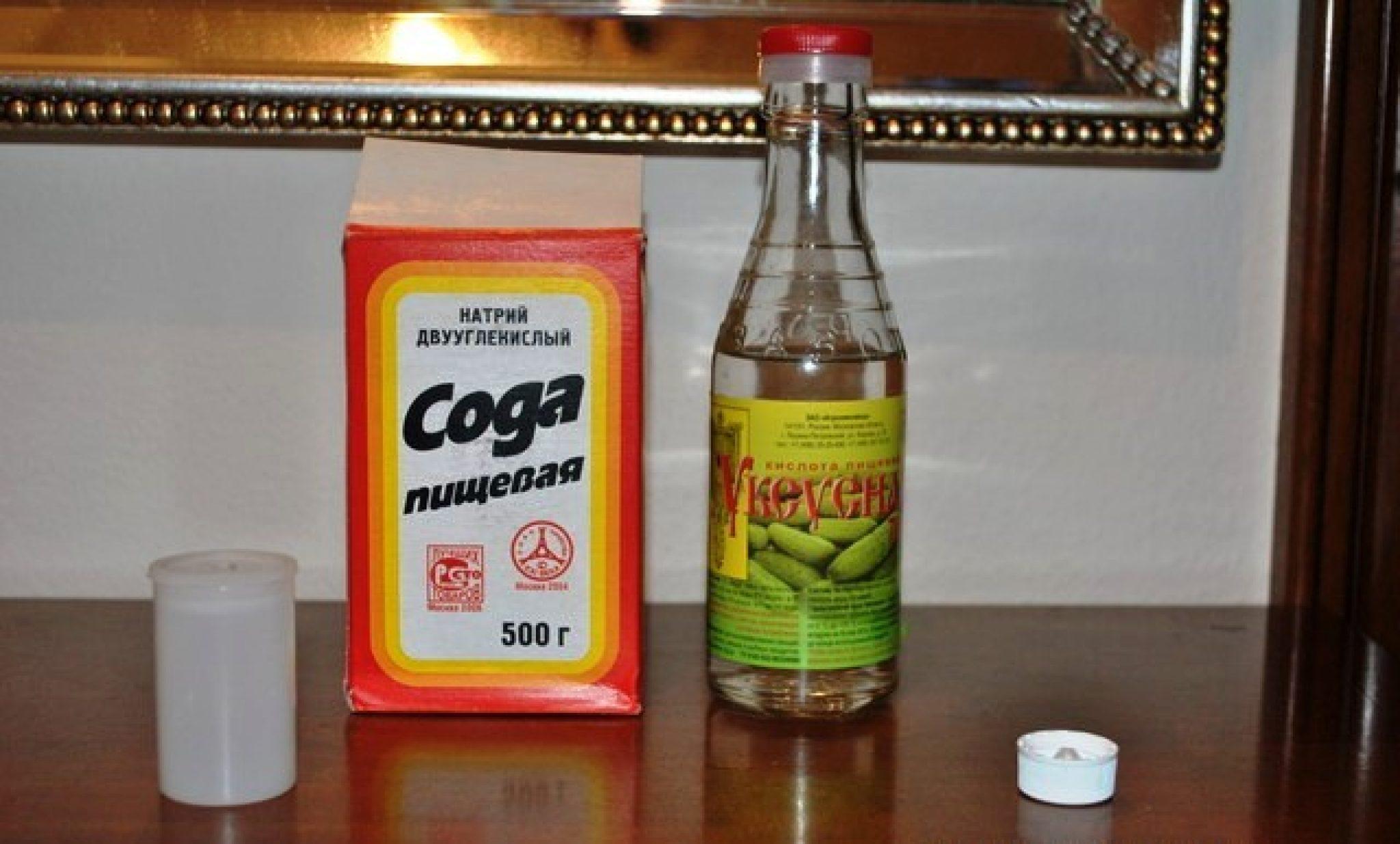 Столовый уксус применяется в качестве самостоятельного компонента, либо в сочетании с обоими видами соды.