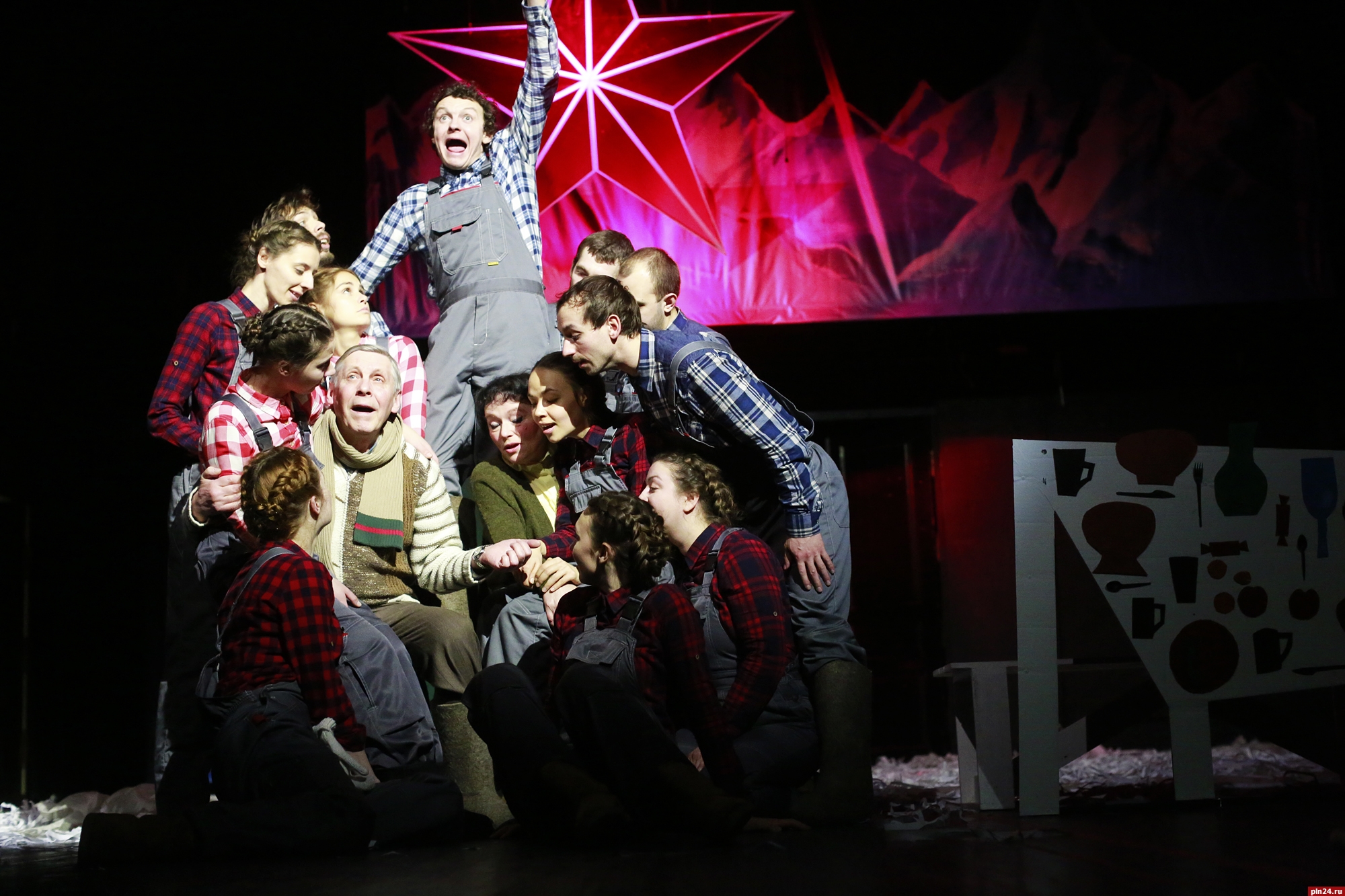 Это может быть разговор о месте, о реальном месте, где играется спектакль, о его истории и непредсказуемости жизни, которая закинула их, известных актёров, играть в этом забытом Богом месте.