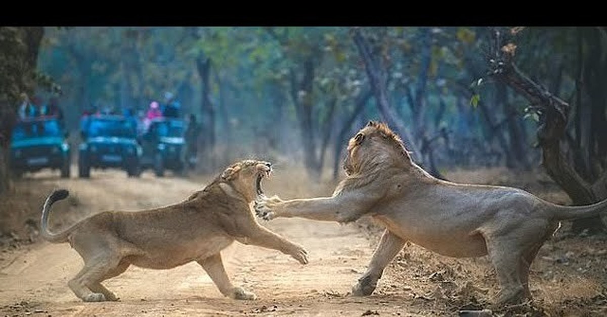 Однако с учетом того, что недавно впервые за 27 лет рядом с этим национальным парком были замечены тигры, вопрос о том, «кто победит в схватке между львами и тиграми», наконец-то может быть снят в дикой природе!