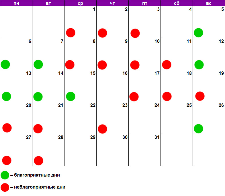 А вот впереди не слишком удачные, для похода к мастерам дни