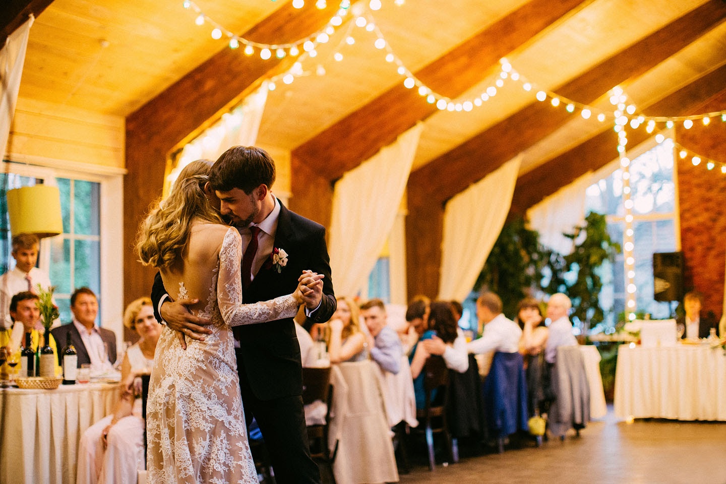 Часто нас спрашивают, когда играть музыку на свадьбе, а когда нет. Мы думаем, что музыка должна звучать всегда, за исключением важных моментов, таких как выступления и объявления. Думайте об этом как о саундтреке к фильму, музыка звучит от начала до конца.