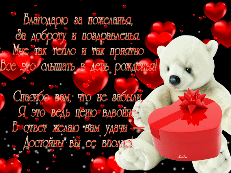 - С днем рождения, мой маленький ангел! Я не встречал такого мудрого и доброго человека, как ты. Восхищаюсь всем, что есть в тебе. Желаю всего, что может дать тебе этот мир.
