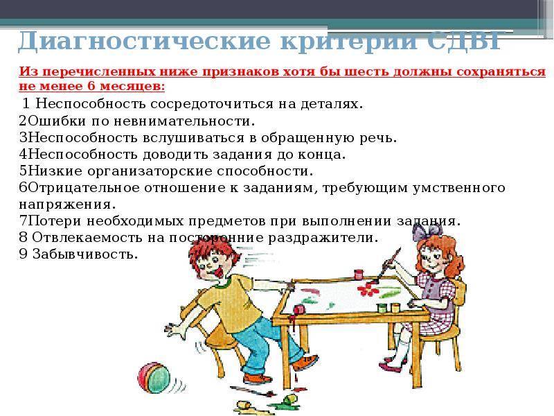 Это не просто нормально, но ожидаемо, что маленький ребенок время от времени отвлекается или испытывает всплески энергии/беспокойства. Такое поведение не обязательно означает, что у вашего ребенка будет диагностирован СДВГ. Когда проблемы мешают ежедневному функционированию, следует рассмотреть вопрос об оценке.