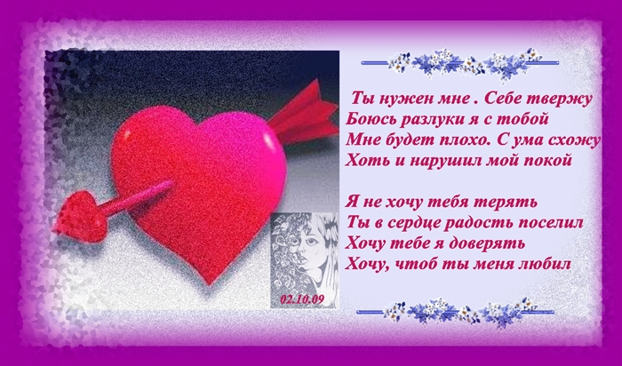 Я очень скучаю по тебе…скучаю, даже когда рядом, скучаю по твоим нежным рукам, мне нужно чувствовать твое тепло, согрей меня…взамен я отдам тебе свою любовь…Я тебя люблю».