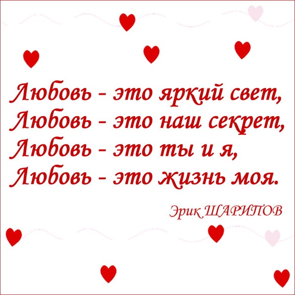 Здравствуй, любимый! Я знаю, что те слова которые сейчас напишу, ты обязательно услышишь Я думаю это случится самым волшебным образом и я знаю, что это обязательно случится. Родной, ты самый дорогой человек для меня во всем мире, мою любовь к тебе нельзя описать никакими словами Своим существованием ты озаряешь всю мою жизнь и я очень благодарна тебе за это Все дни мои, благодаря тебе наполнены счастьем и любовью Я знаю как сильно ты любишь меня, и свою любовь ты выражаешь не только в словах Я прекрасно знаю, что ты меня любишь, и ты тоже это знаешь.