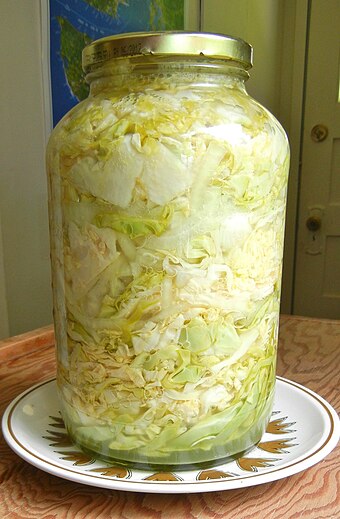Овощи и специи смешивают с солью или помещают в рассол с морской водой.Затем соль подавляет рост нежелательных организмов до тех пор, пока кислота, продуцируемая лактобациллами, не снизит pH в достаточной степени, чтобы подавить рост и порчу. Конечный продукт богат полезными микробами. Однако, если продукт пастеризован для консервирования или розлива в бутылки — например, квашеная капуста, которую вы найдете на полке супермаркета, — организмы погибают.