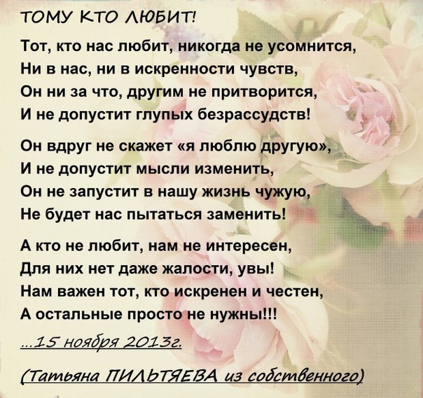 Вроде чувства давно перегорели; разумом пониманию, что всё прошло и ничего не вернуть. А сердце тихо-тихо шепчет: «Хочу быть с ним» .