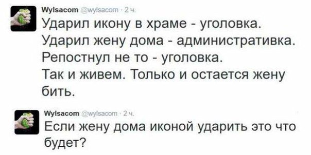 – Говорят, что если мужчина хоть раз ударил женщину, то это сигнал расстаться с ним…